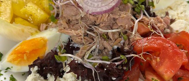 - Senfeier mit Mischgemüse & Kartoffeln